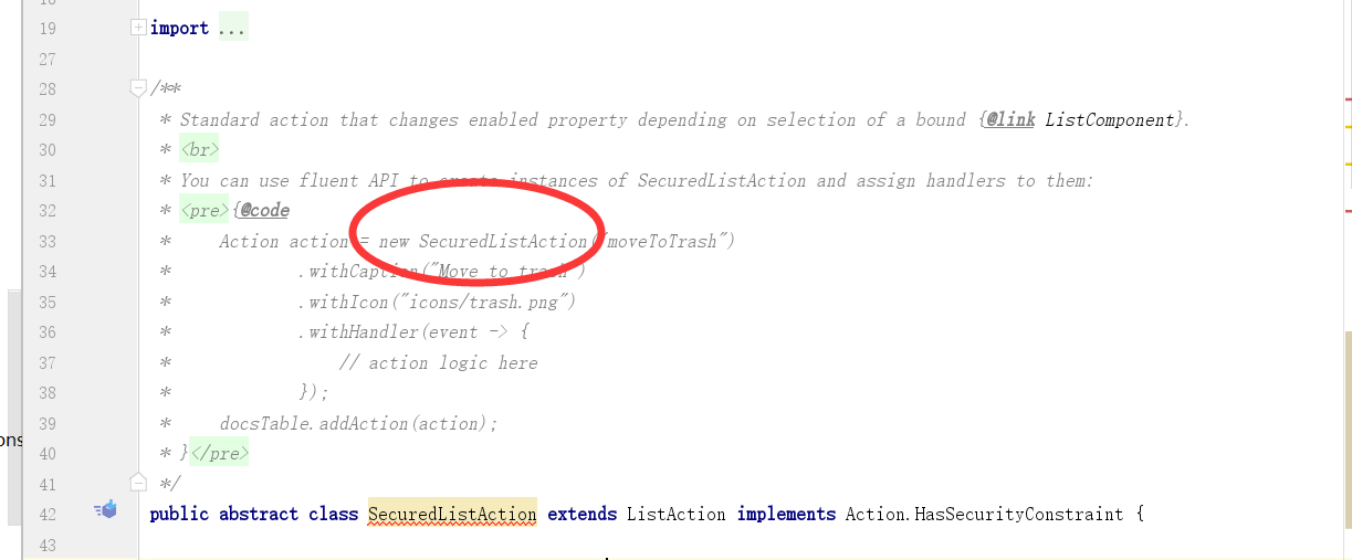 The SecureListAction is abstract ,the sample code seems incorrect: