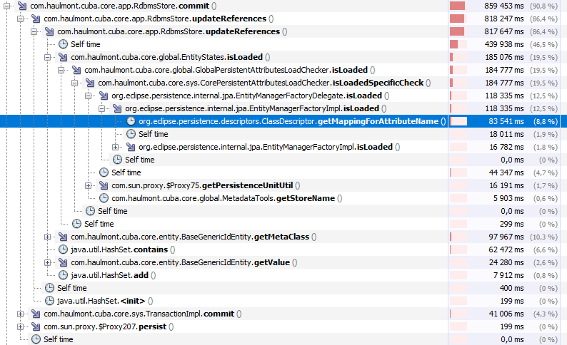It appears that this eclipse method is a hot spot: org.eclipse.persistence.descriptors.ClassDescriptor.getMappingForAttributeName.