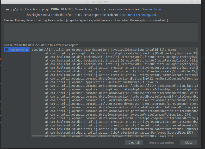 I don’t know why but every time when I open the Cuba 7 Project I have this IDE Fatal Errors: