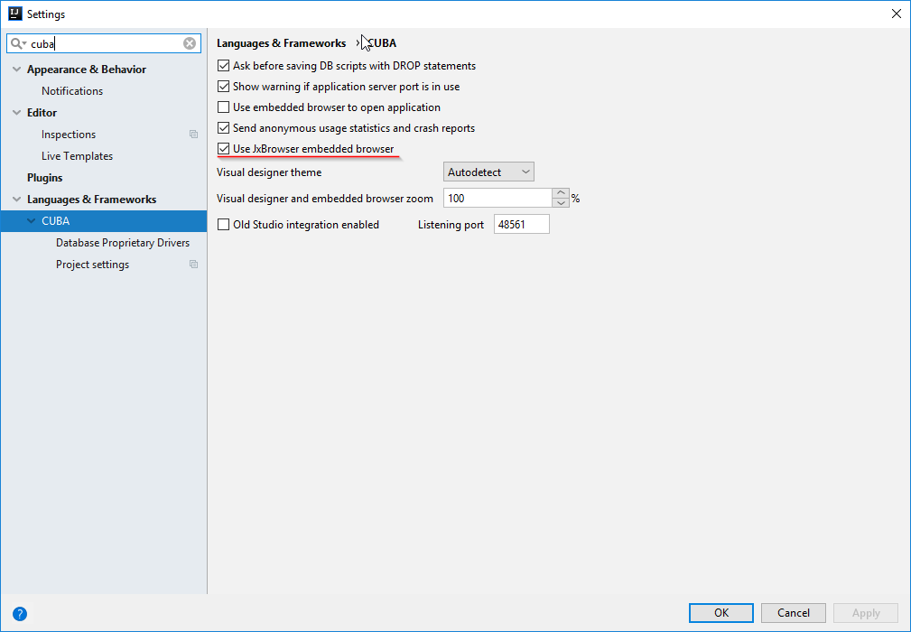 I use “Cuba Studio” as “IntelliJ 2019.2.1” plugin.