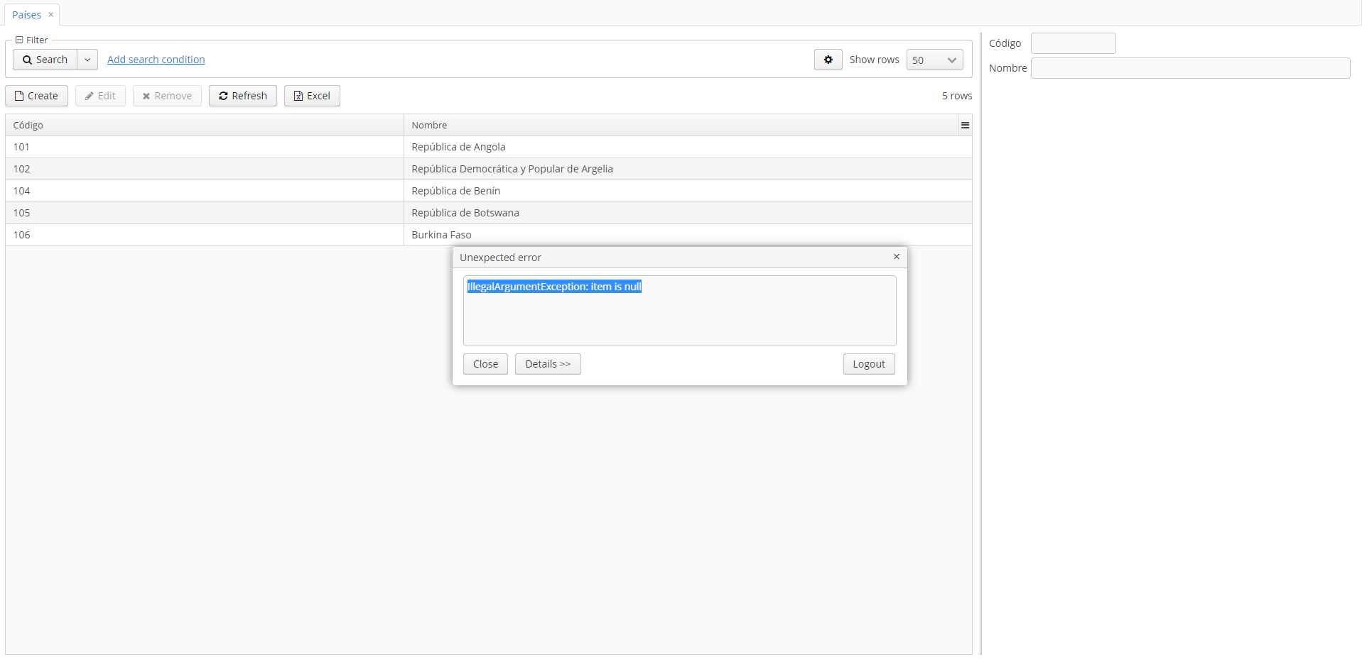 When the screen is opened and the user presses CTRL + ENTER while the controls are deactivated, the issue error is generated.