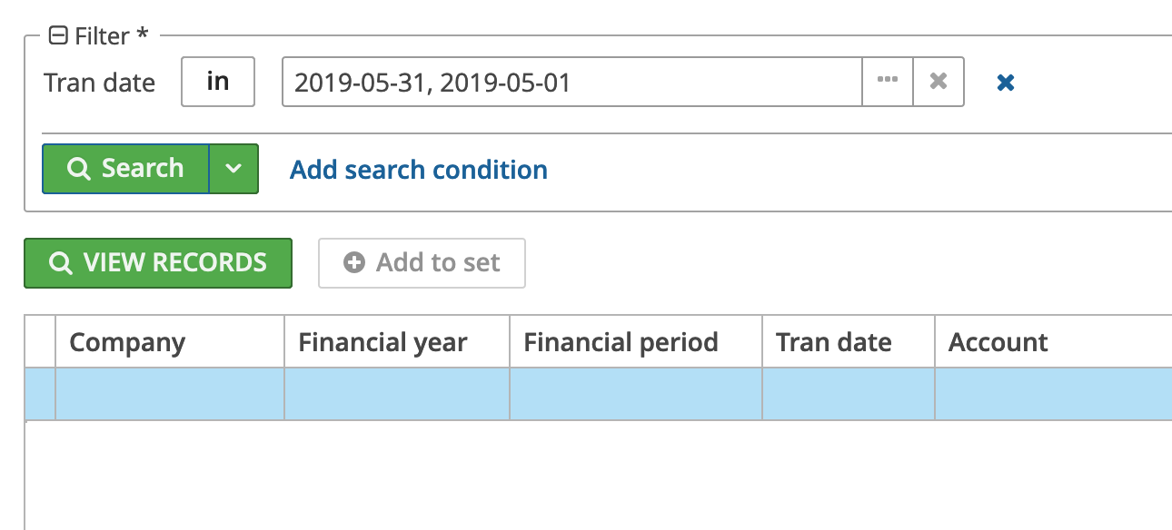 “IN” condition checks the set of items, not the range. If you need to check the date range, you’ll have to add two conditions with “>” and “<” operators. Another option that may be useful in some cases is to use the “In interval” operator that allows to check some special cases, e.g. “This month” condition, that will always work for the current month.