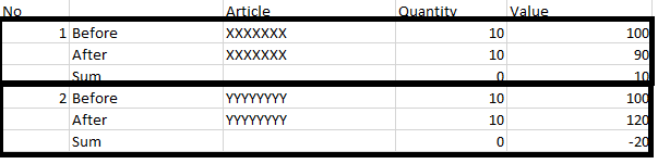 I have table structure Documents entity Correction entity in relation one-to-many and Correction entity DocumentSpecification entity in relation one-to-one but, I have two item for each Correction entity before and after. Now I’d like grouping each item before after related to Correction entity in one block like on screen witch I attached in previous post. How Can I reach this functionality in groupTable ?